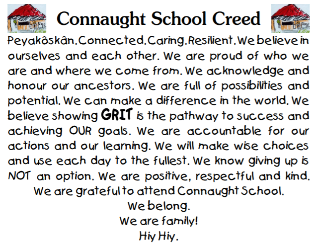 Our Mission statement: Connaught School strives to create a positive community dedicated to learning through kindness, encouragement and trust while inspiring ALL to reach personal success.